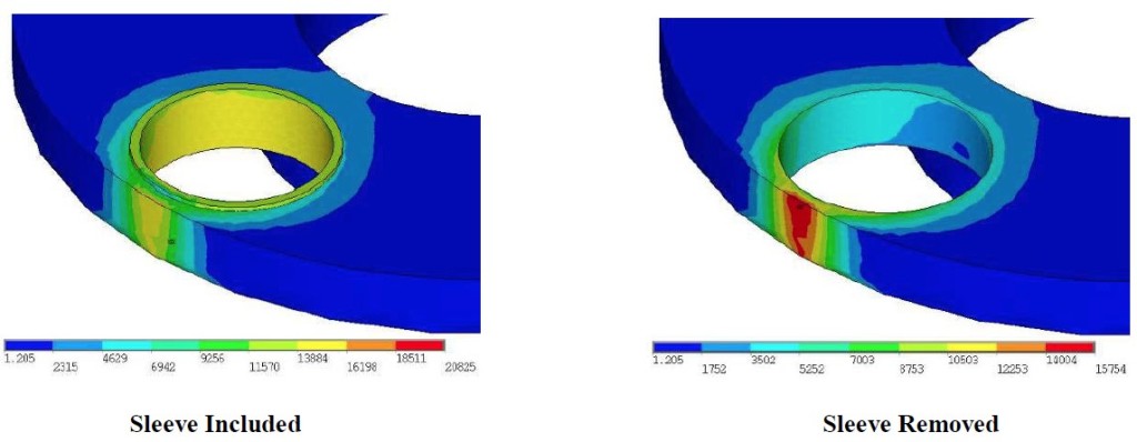 Stress analysis indicated the recommended shaft sleeve would restore pin fit and maintain the function of the gearbox component.